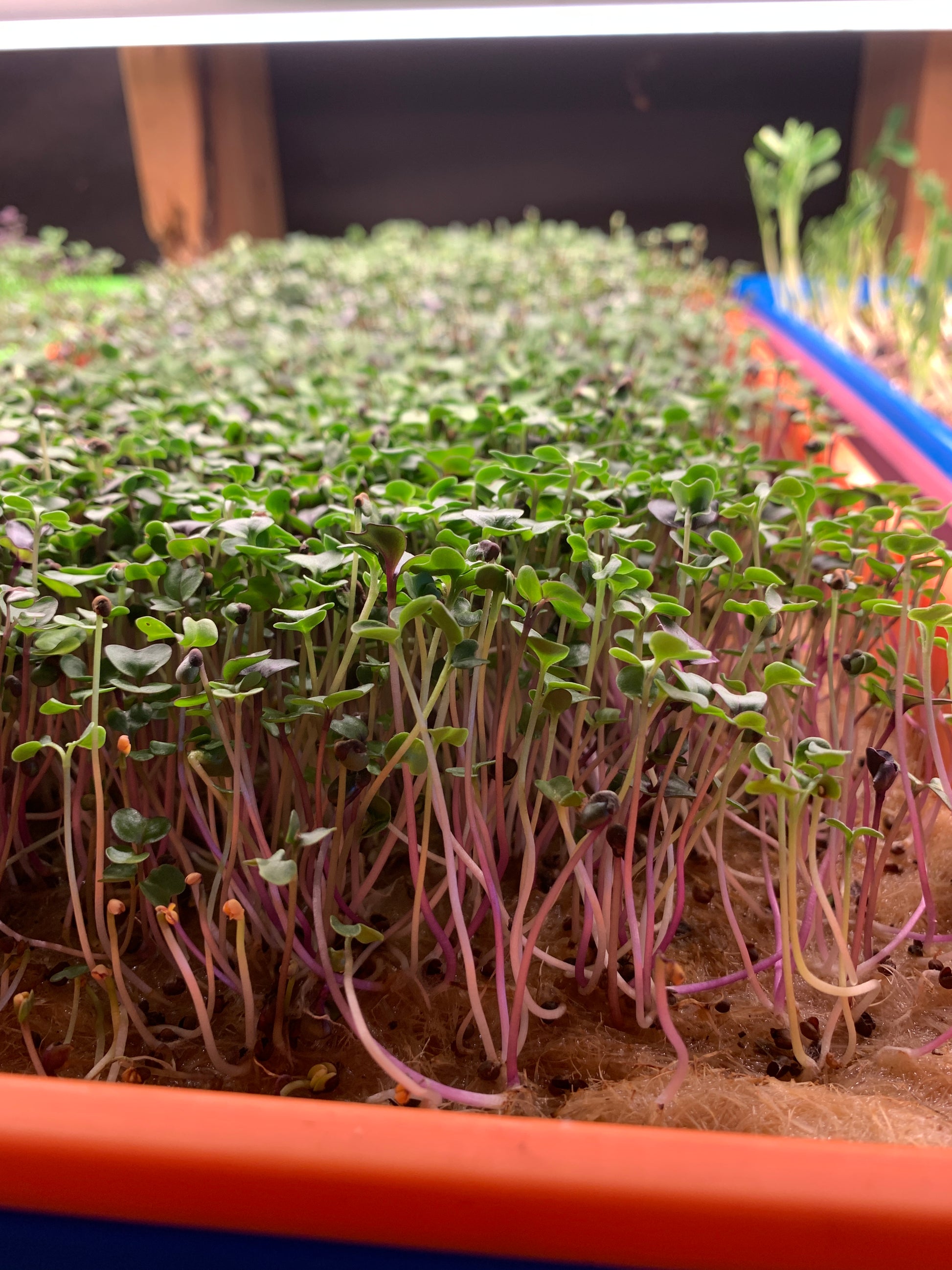 Radical Radish, or Rad Rad for short, is a vibrant, mildly spicy blend of purple and green radish leaves with red, purple, and pink stems. A visually stunning, flavorful mix for ultimate plate appeal.