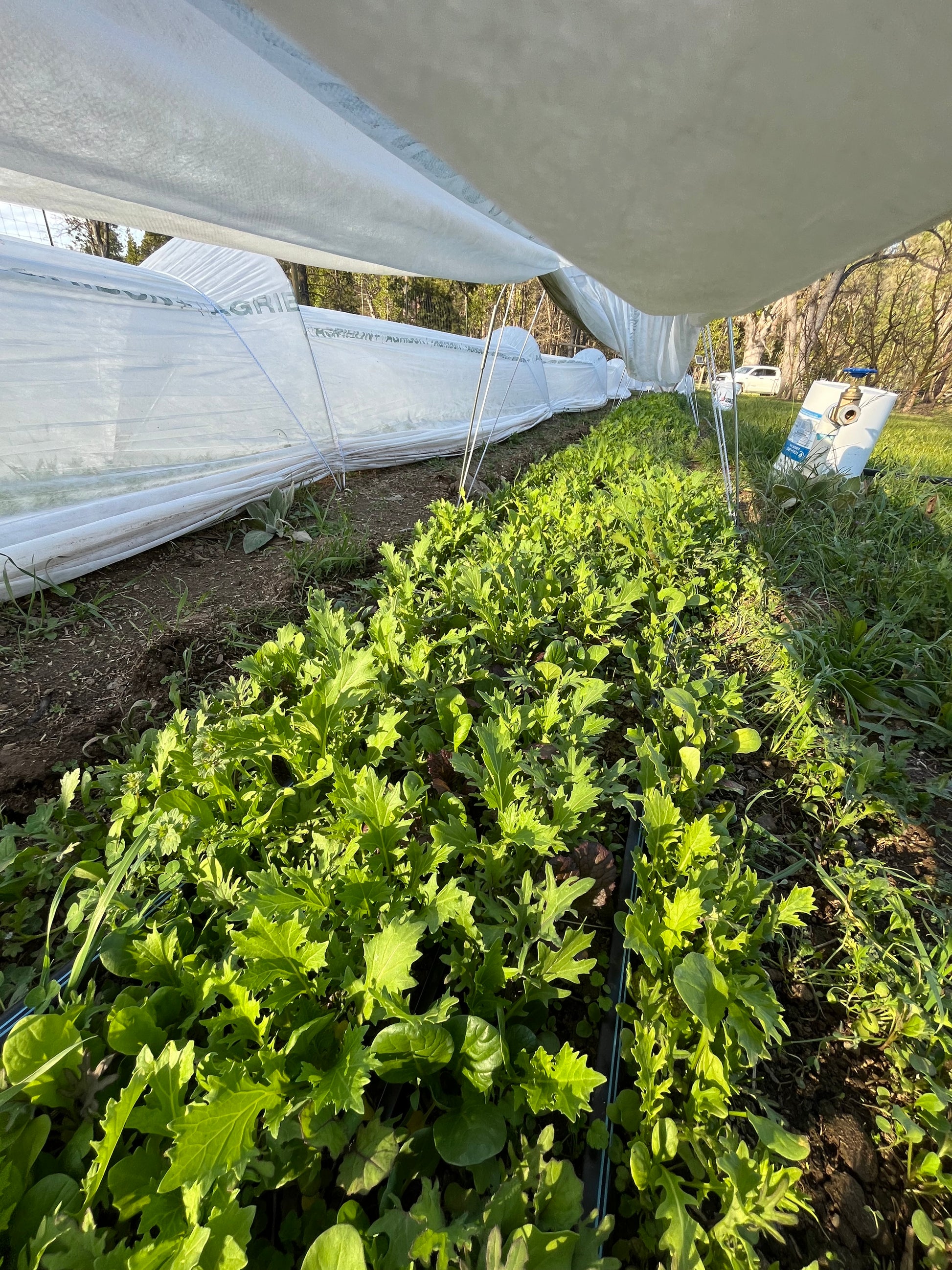 A great combination of both mild and spicy ingredients. Includes red mustard, mizuna, tatsoi, kale, and arugula.